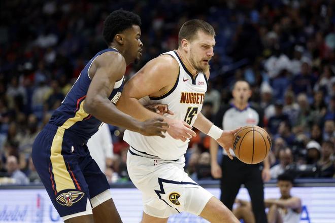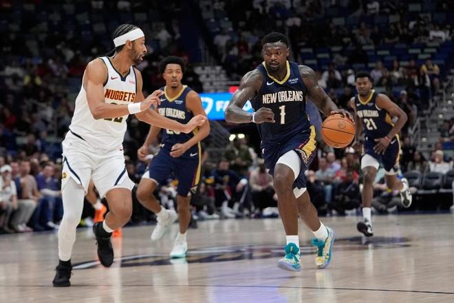 掘金上一場主場127-130惜敗公牛結束7連勝,鵜鶘過去6場遭遇6連敗位列西部倒數第一。本場掘金缺少戈登、斯特勞瑟與佈勞恩,鵜鶘缺少穆雷、普爾與馬特科維奇。首節開局掘金5-3領先,鵜鶘連得4分,穆雷三分命中取得2分優勢。鵜鶘內外開花打出一波17-2攻勢反超13分,掘金連追5分,掘金之後繼續20-29落後。約基奇攻傳結合引領一波6-0攻勢追分,鵜鶘罰球再得1分,首節結束掘金26-30落後鵜鶘,約基奇6中4得到10+4+4,錫安5中3得到6分。