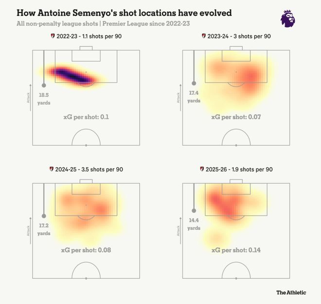 在不久的將來,25歲塞門約將不可避免地加盟一傢英超強隊。但那是不是最佳選擇,可能很難預測。他的特點最適合伯恩茅斯的打法,自從伊勞拉執教以來,隻有利物浦的快攻射門次數超過「櫻桃軍團」,而塞門約非常擅長使用自己左右開弓的優點進行快速進攻,趁對手防守混亂之際制造威脅。數據顯示,本賽季沒有球員比塞門約在反擊中進更多的球。