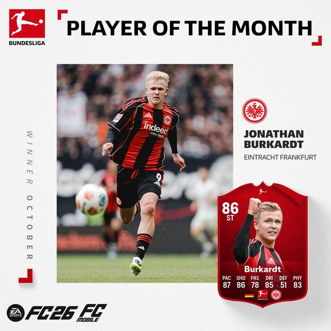 北京时间11月6日,德甲官方宣布,法兰克福前锋伯卡特当选德甲10月最佳球员。