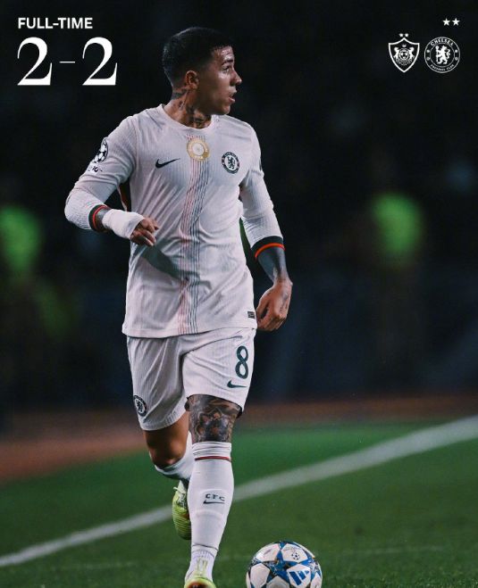 第54分钟,德拉普禁区内持球回敲,恩佐停球低射被科查尔斯基单掌托出;3分钟后,凯塞多直塞,德拉普单刀射门还是被科查尔斯基拒之门外。随后的时间,虽然切尔西明显占据着场上的优势,无奈锋线上把握机会着实太差;全场比赛蓝军16次射门,只有4次命中门框范围内;最终双方打成了2:2,切尔西爆冷艰难逼平。