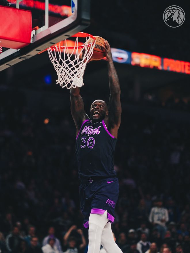 森林狼隊首發陣容:迪文琴佐、愛德華茲、麥克丹尼爾斯、蘭德爾、戈貝爾