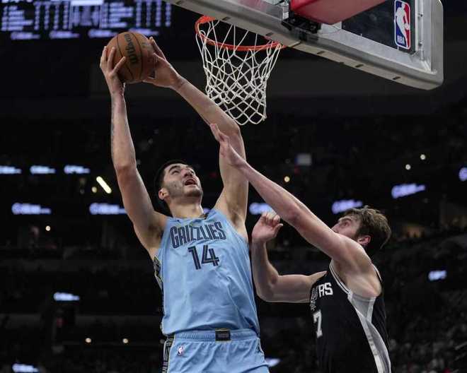 馬刺上一場主場123-110戰勝國王,灰熊過去4場連輸雷霆、尼克斯、凱爾特人與騎士遭遇4連敗。本場馬刺缺少文班亞馬、哈珀、卡斯爾等,灰熊缺少莫蘭特、克拉克等。首節開局馬刺2-10落後,馬刺一波6-0攻勢追分,伊迪勾手得分,索漢三分追分。阿爾達馬上籃命中,奧利尼克上籃回敬,雙方之後持續緊咬比分拉鋸戰,首節結束馬刺23-24落後灰熊。首節灰熊僅25中9,馬刺僅23中7,雙方均是命中4記三分,賈倫5中1僅得到2分,福克斯與瓦塞爾合計9中1僅得到4分。