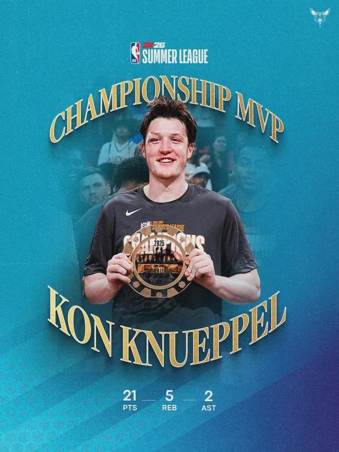 他叫康-克努佩爾,今年20歲,休賽期剛給黃蜂贏瞭一個夏聯冠軍。