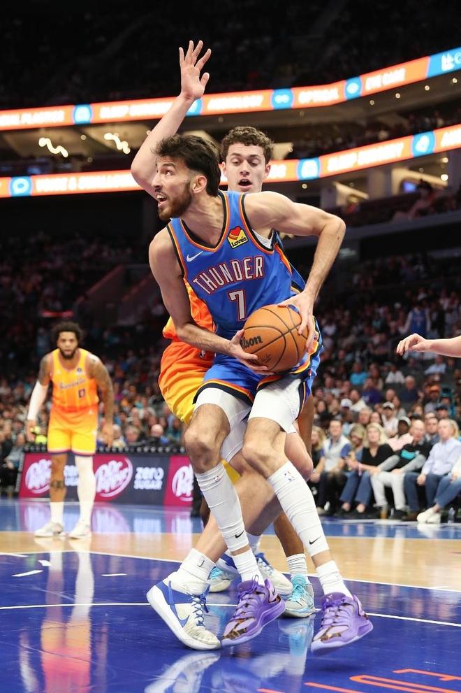 中場休息回來,雷霆本場第2次單節轟下30+得分,且限制黃蜂首次單節得分不足20分。黃蜂率先追到57-57,亞歷山大連續得分引領一波16-1攻勢拉開15分優勢,黃蜂一波7-0攻勢追分。亞歷山大攻傳結合繼續給力表現,他第三節7中6高效得到15分,率領雷霆一度87-67領先20分。黃蜂追回3分,雷霆單節32-18凈勝14分,三節結束雷霆擴大87-70領先黃蜂。前三節比賽,亞歷山大19中13高效33分7助攻與霍姆格倫21+7,塞克斯頓3記三分13分引領黃蜂4人得分上雙。