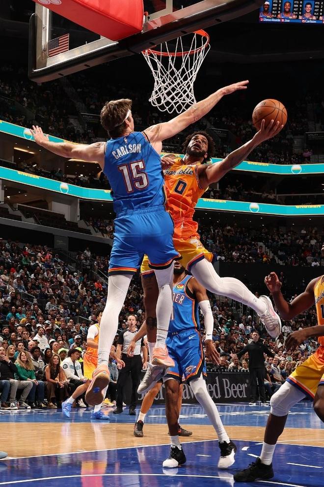 北京時間11月16日,NBA常規賽衛冕冠軍雷霆客場對陣黃蜂,其中黃蜂是背靠背第二場,三球輪休缺席。亞歷山大三節轟下33分7助攻提前打卡,雷霆持續壓制黃蜂逐步擴大20+優勢,並且擋住黃蜂的頑強追分,最終雷霆109-96戰勝黃蜂豪取5連勝,雷霆新賽季13勝1負高居聯盟第一領跑,黃蜂遭遇2連敗。
