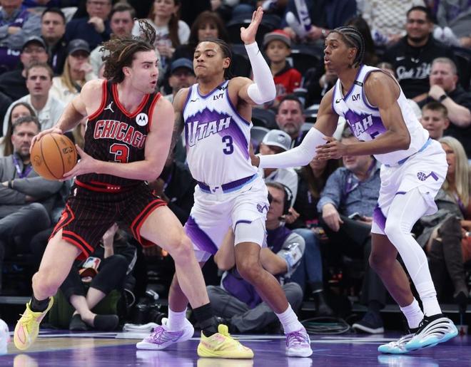 公牛過去4場連輸雄鹿、騎士、馬刺與活塞遭遇4連敗,爵士上一場主場122-132輸給老鷹。本場公牛缺少科林斯,懷特復出賽季首秀,吉迪也復出,爵士缺少李凱爾、凱斯勒、亨德裡克斯與尼昂。首節雙方均是轟下30+得分展開對攻,公牛開局3-10落後,並在之後17-24落後。公牛持續追分,兩隊首節均是沒有球員得分上雙,但借助團隊攻勢同樣打出高得分,首節結束雙方維持33-33。公牛三分14中5,吉迪3中0得到2分3助攻,爵士三分16中4,馬爾卡寧8中3得到9分。
