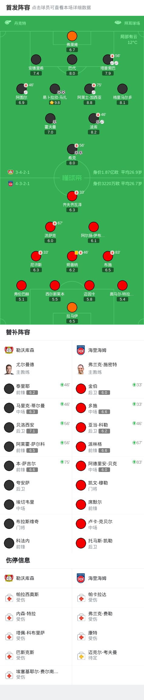 第22分钟,海登海姆后防配合失误,希克打进空门,勒沃库森3-0领先
