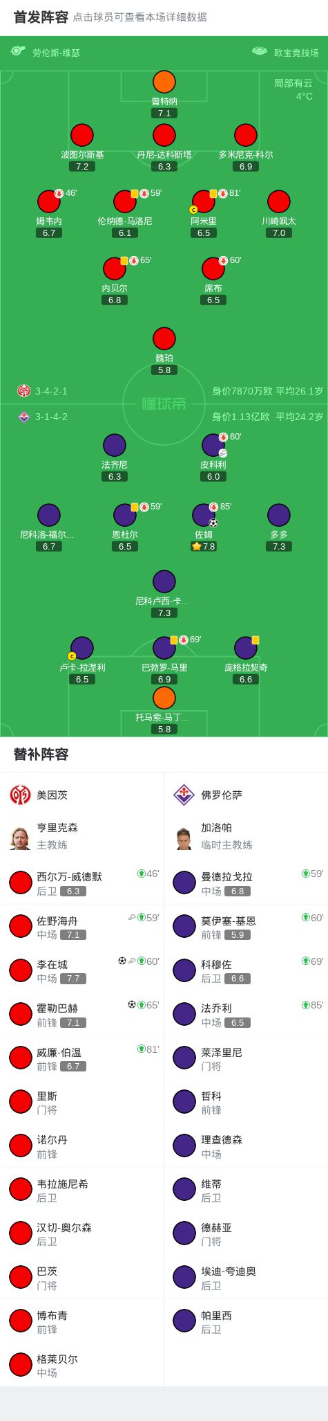 第16分钟,中卫出球失误,皮科利助攻佐姆劲射破门,佛罗伦萨1-0